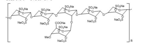 木聚硫鈉(愛(ài)必羅)數(shù)十年前發(fā)現(xiàn)于歐洲,用于治療間質(zhì)性膀胱炎,是一種半合成的肝素類大分子碳水化合物衍生物,化學(xué)性質(zhì)和結(jié)構(gòu)式類似于糖胺聚糖。是一種白色無(wú)味粉末,輕微吸濕,在PH=6時(shí)能溶于水至50%。分子量從4000Da--6000Dd。具有抗凝和纖溶作用,在治療間質(zhì)性膀胱炎中的作用機(jī)制尚不清楚。