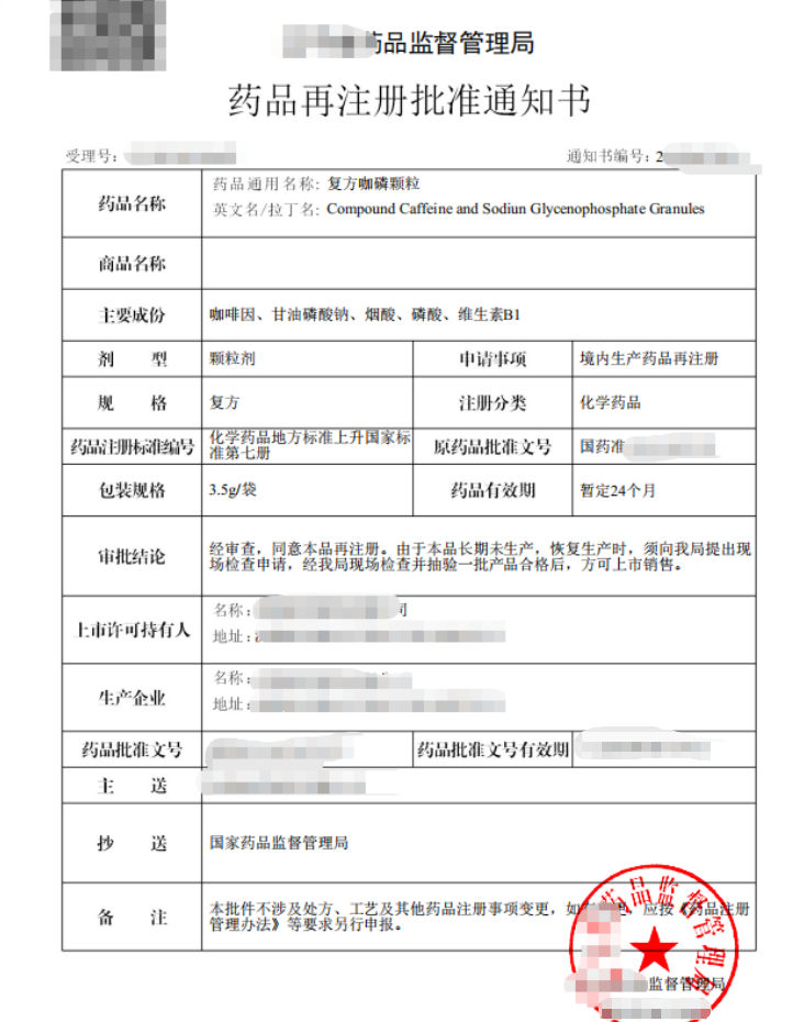 通用名:復(fù)方咖磷顆粒(Compound Caffeine and Sodium Glycenophosphate Granules)