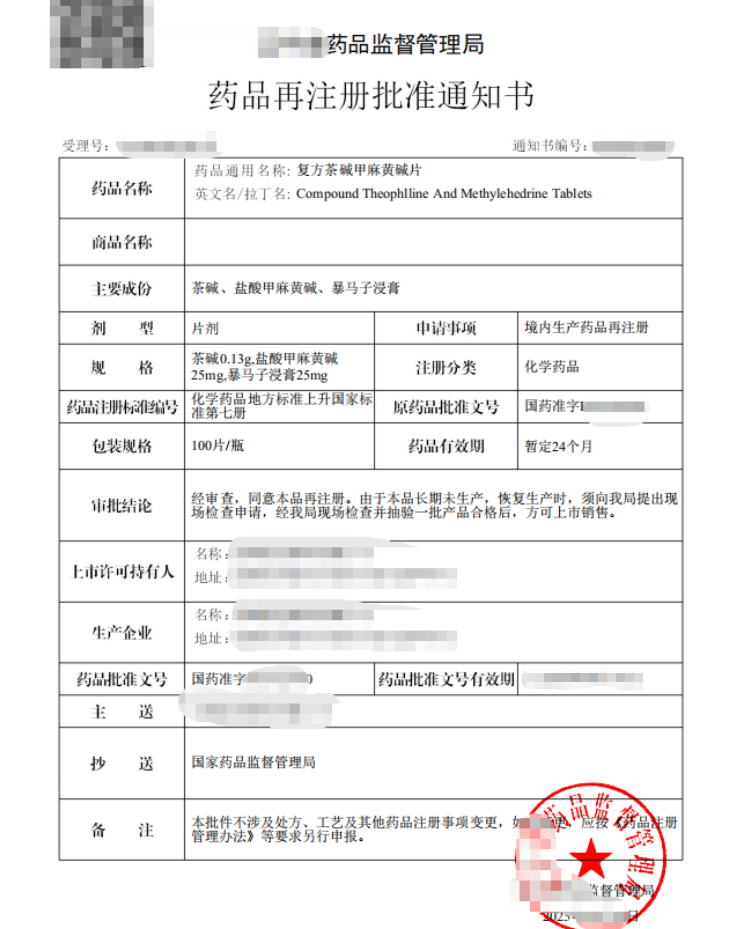 通用名:復(fù)方茶堿甲麻黃堿片(Compound Theophlline And Methylehedrine Tablets)